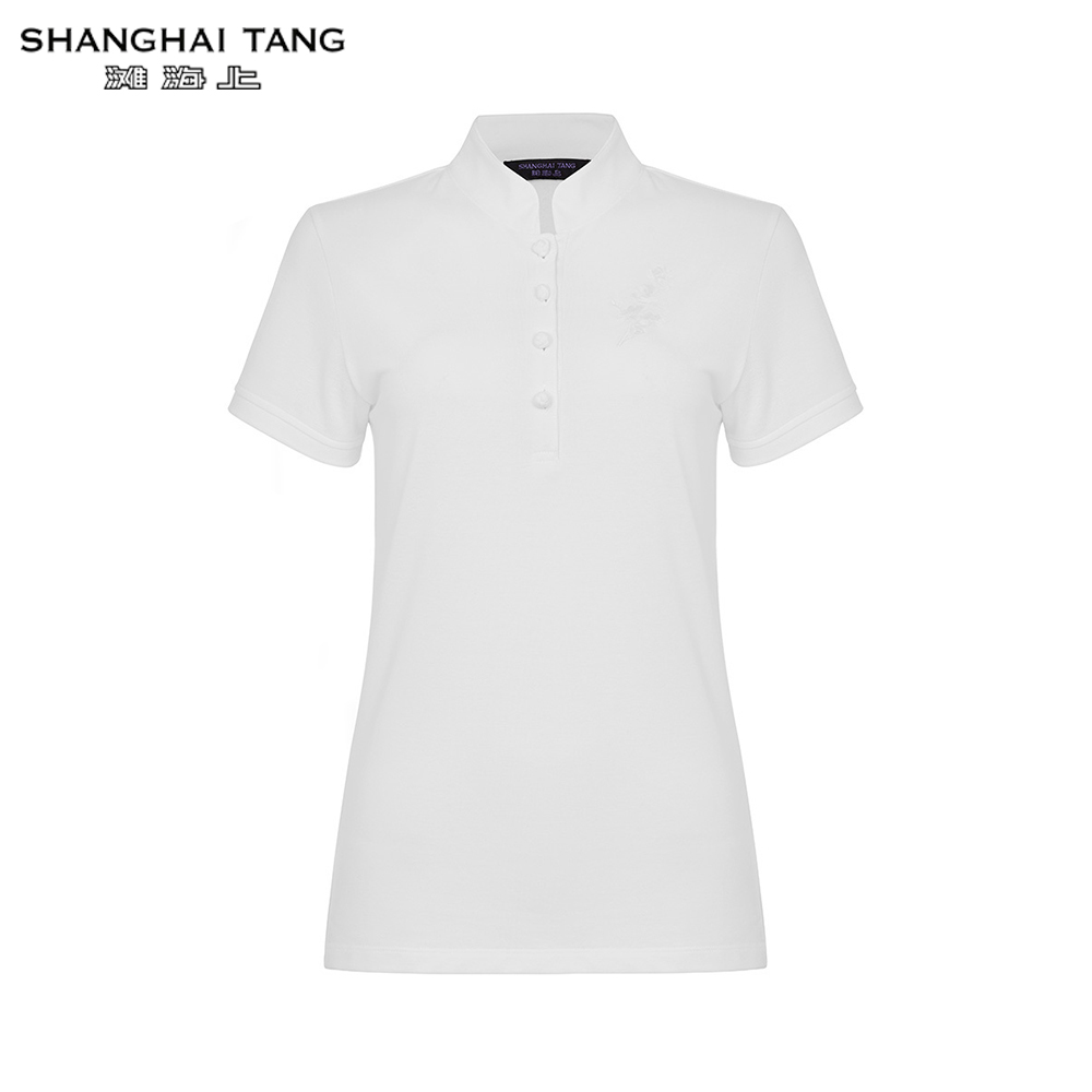 Shanghai Tang's take on the classic polo shirt is a firm fan favourite. Reimagined with our iconic Mandarin collar, this everyday staple has a bit of sporty chic, a dash of modern Chinese elegance and everything in between. This slim-fitted style from the Chinese Garden collection features nature-inspired embroidery of birds in tone-on-tone thread that is discreet but no less stylish.