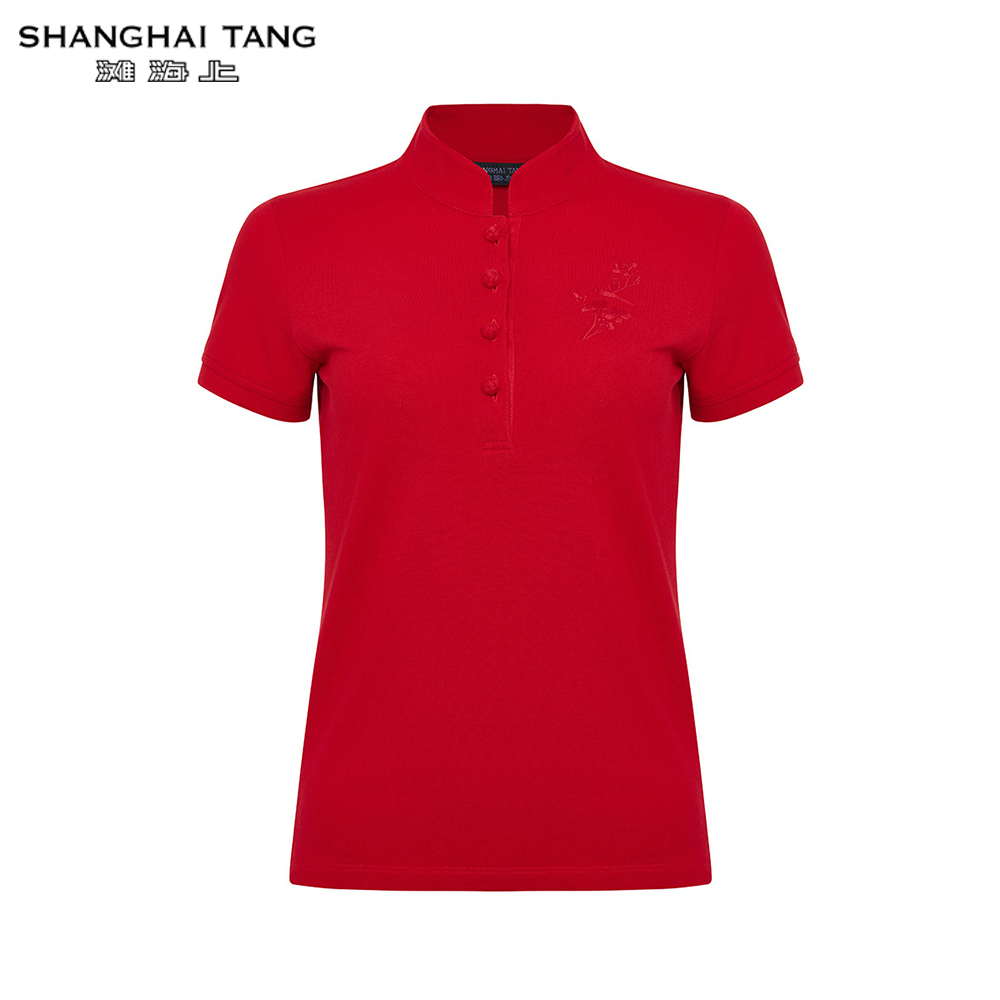 Shanghai Tang Tonal Bird Embroidery Slim Fit Women's Polo Shirt