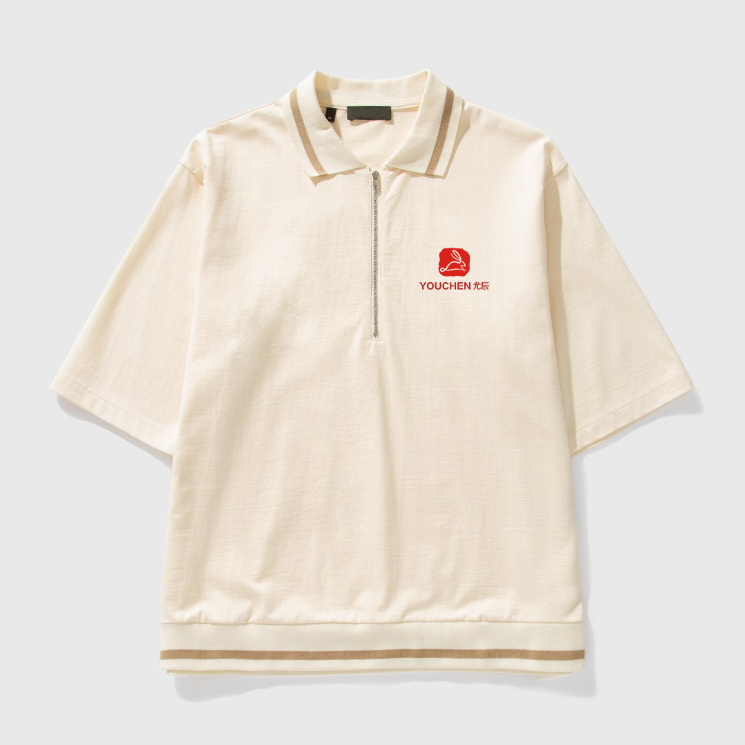 OEM High Quality Streetwear Custom Men's Quarter Zip Polo Shirt Short Sleeve Embroidered Logo Drop Shoulder Golf Polo T-shirt