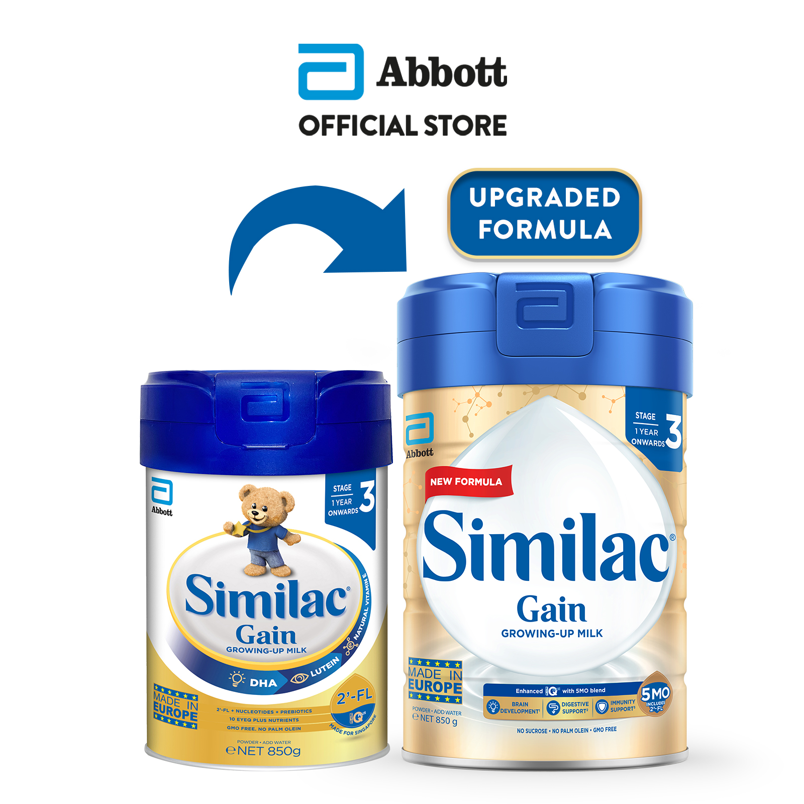 Similac Gain 5MO Stage 3 Growing-Up Baby Milk Powder Formula 850g (1 year onwards)