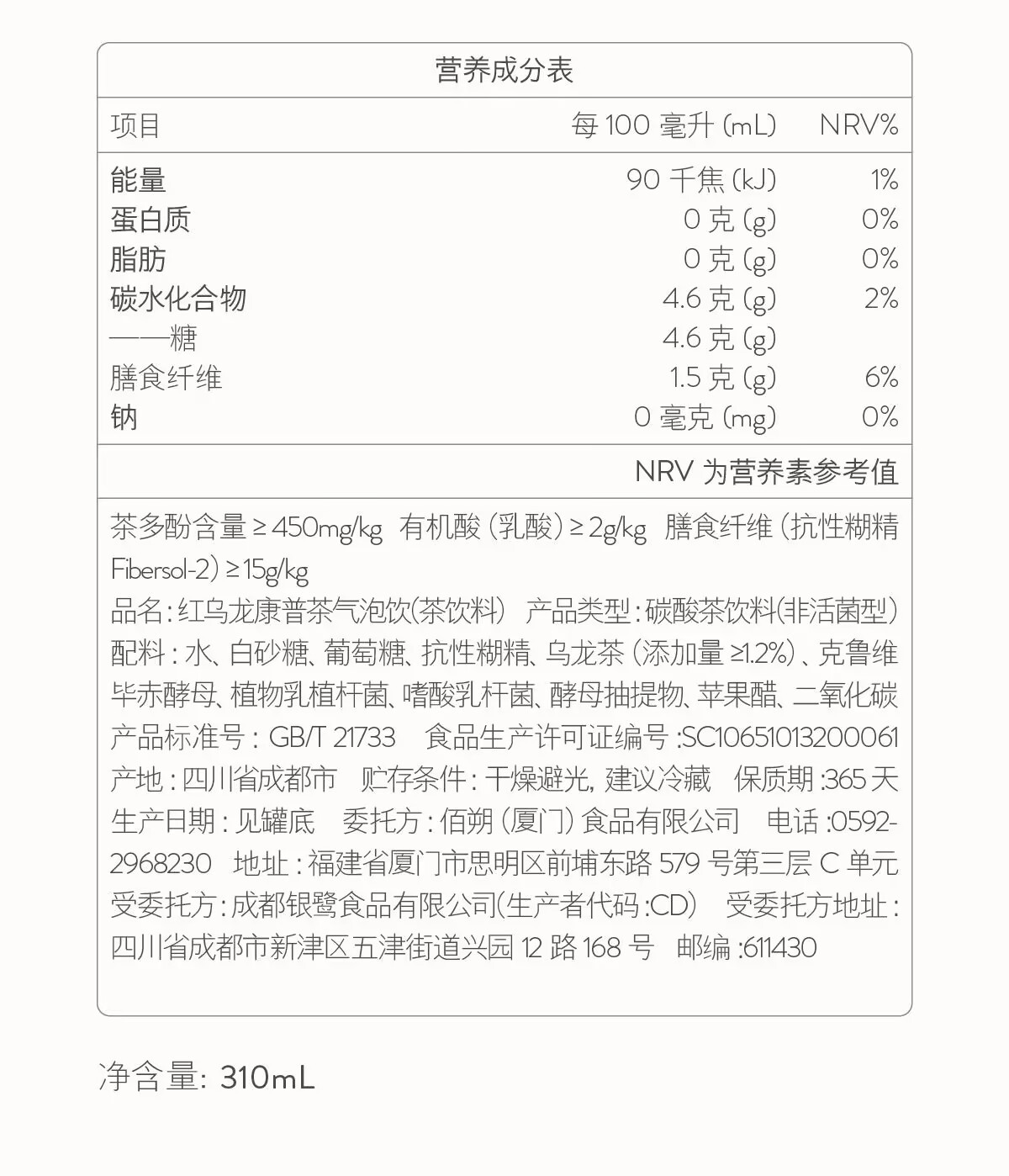 BASAO Baishuo red oolong black oolong Kombucha bubble drinks carbonated drinks bubble water 310ml/1 can.