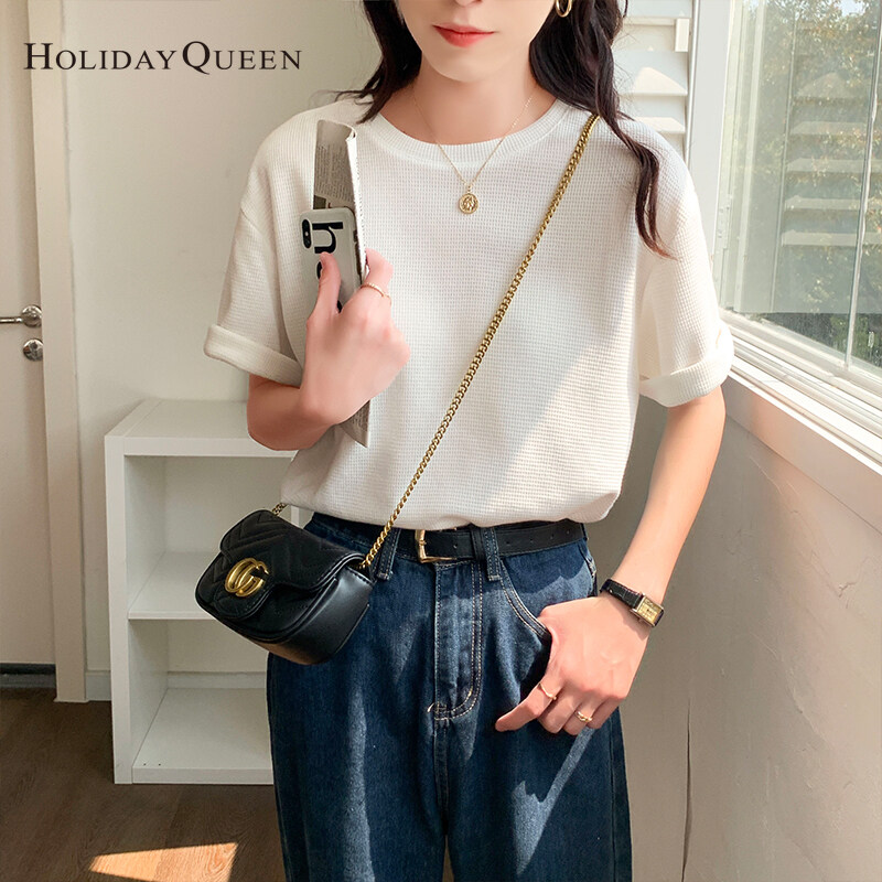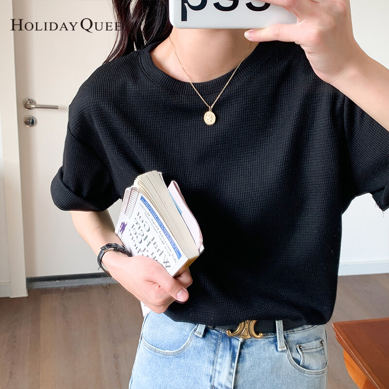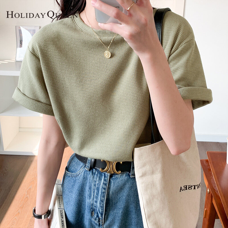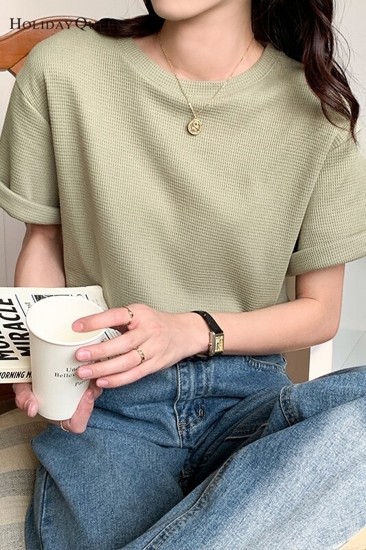 HolidayQueen Matcha Green Short-sleeved T-shirt Women's Korean Version Summer New Waffle Loose All-match Top S M L XL Free Shipping HQ1261