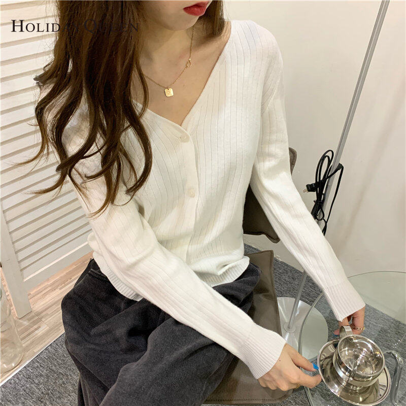 HolidayQueen Women's Clothing Early Spring Lazy Style Loose Knitted Cardigan V-neck Long-sleeved Free Shipping HQ1809