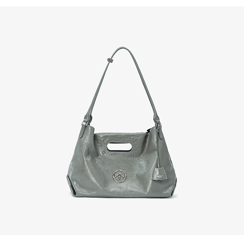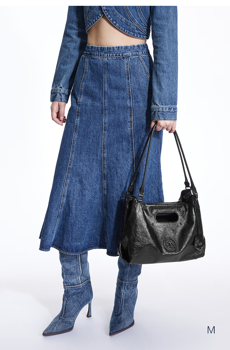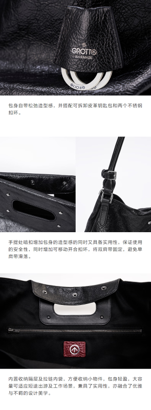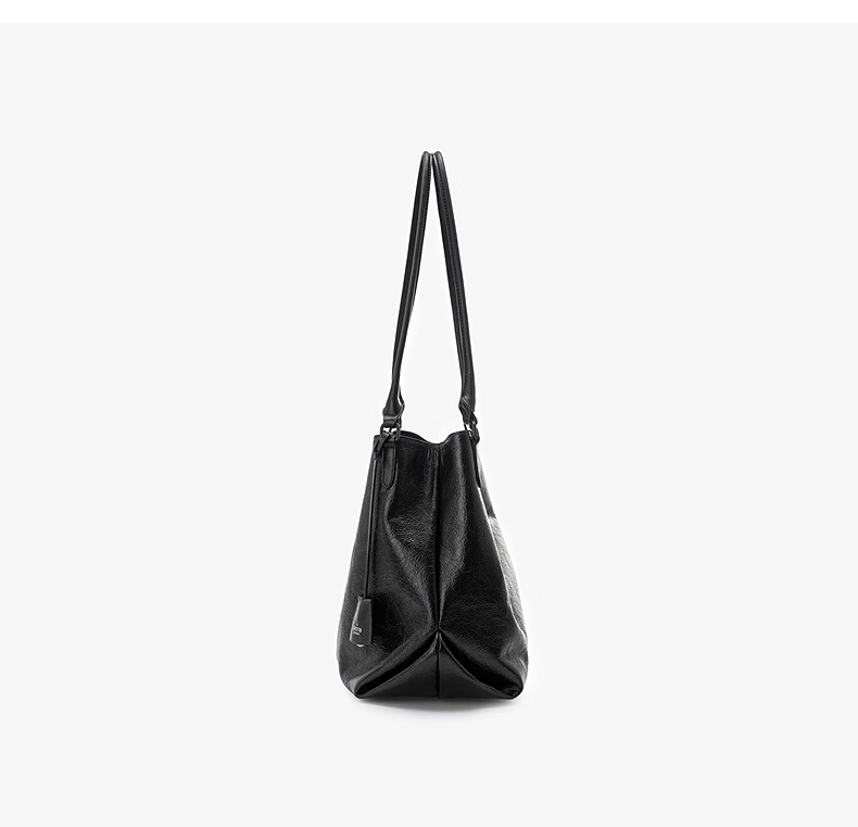 GROTTO new SOFT CARRY tote bag versatile large capacity cowhide handbag shoulder soft bag gift classic black M (bright silver)
