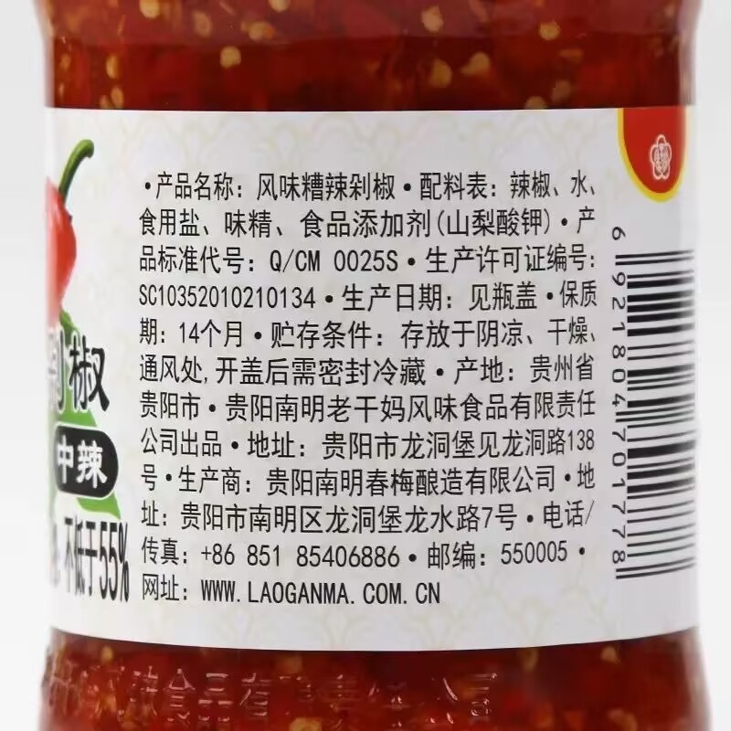 Guizhou specialty Laoganma bad Chili, chopped pepper and fish head sauce stir-fried dishes are packed in 750g*2 bottles