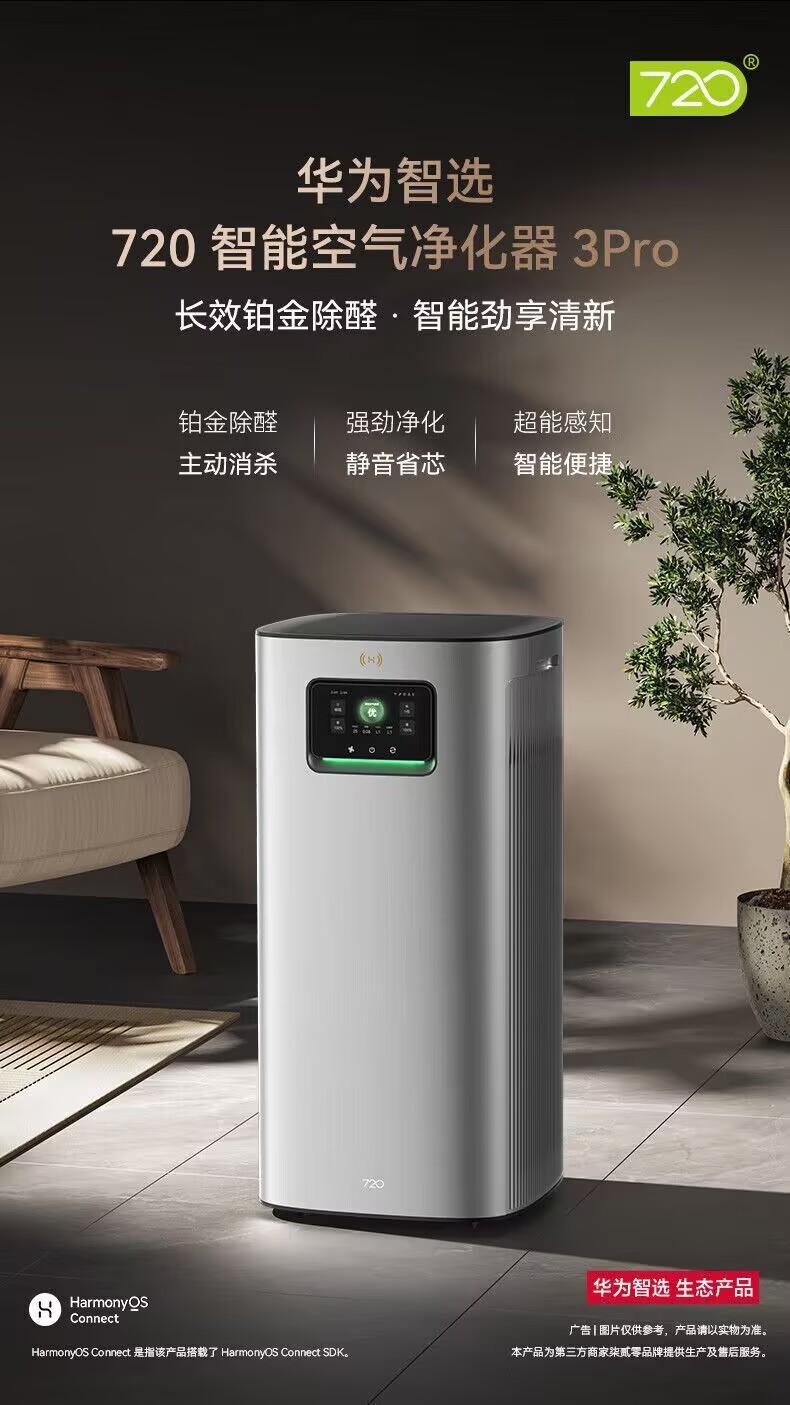 Huawei Smart Select 720 Intelligent Air Purifier 3Pro for omni-directional and efficient purification, active aldehyde removal and cat hair absorption.