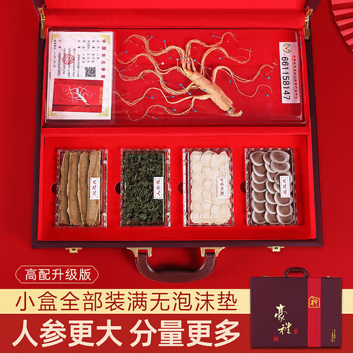 Northeast specialty ginseng treasure gift box for elders, parents, leaders and customers to send gifts for Mid-Autumn Festival and Spring Festival [Five Treasures Brown Gift Box]